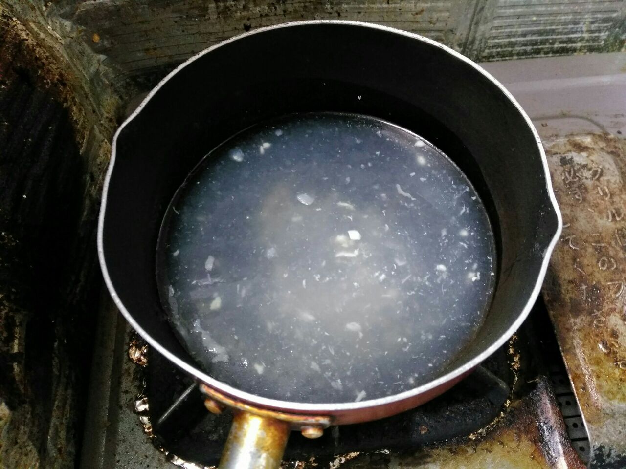 煮こごりになってる鯛ダシと煮干し昆布出汁を合わせて中火にかけるで