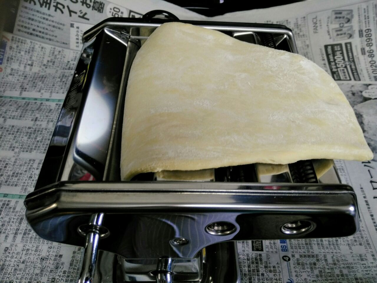 パスタマシンが安物の貧弱なやつなんで強く圧力かけられないんや……